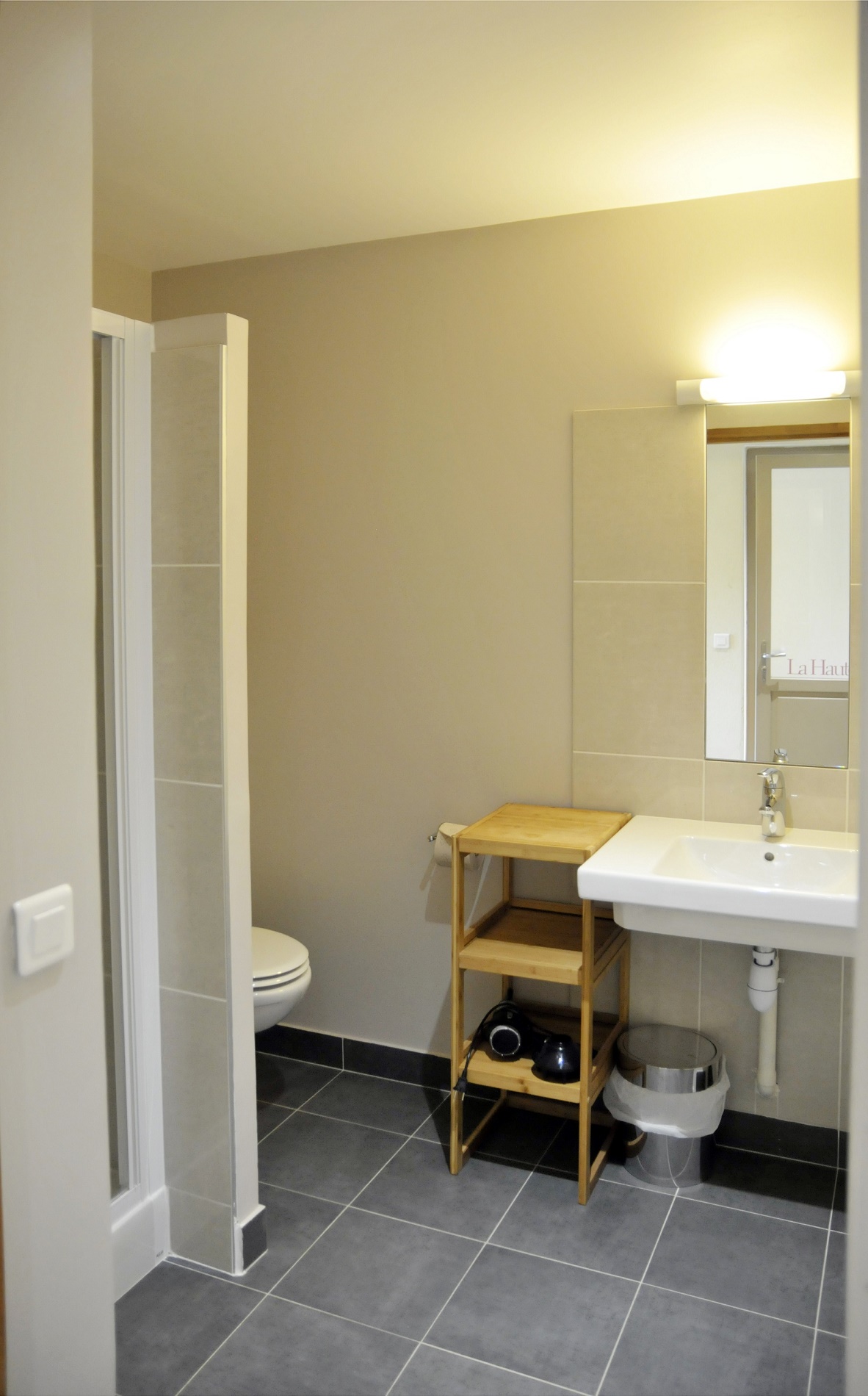 Ce gîte, avec ses grands volumes, offre un sentiment d’espace et de sérénité. La pièce à vivre, composée d'un coin salon, offre un couchage 2 places en mode convertible. Une cuisine moderne, élégante et bien équipée, est à disposition. La salle d’eau, spatieuse, présente douche à l’italienne, lavabo, WC, sèche-cheveux.