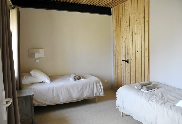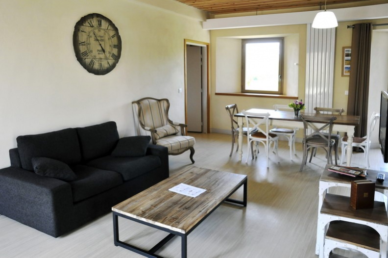 La pièce principale offre trois espaces à vivre distincts, entre le coin salon confortable – et sa TV écran plat 50 cm -, la table à manger et la cuisine équipée, moderne et élégante. Côté cuisine, on accède directement à la terrasse privative, sur le pré, exposée ouest. La salle d’eau, vaste et lumineuse, présente douche à l’italienne, lavabo, sèche-cheveux. Les WC sont indépendants. Côté cour, la 1ère chambre comporte 2 lits 90x200 cm, ainsi qu’1 lit d’appoint, préparé sur demande. Côté pré, la 2eme chambre comporte 1 lit 140x200 cm.