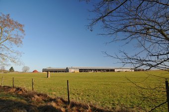 - le deuxième hangar abrite une stabulation pour le troupeau ovin, et permet aussi le stockage de la paille et l'abri du matériel agricole: tracteurs, faneuse...