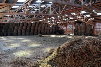 - le premier hangar est constitué d'une stabulation pour le troupeau bovin, d'un espace de stockage pour le foin et le grain;