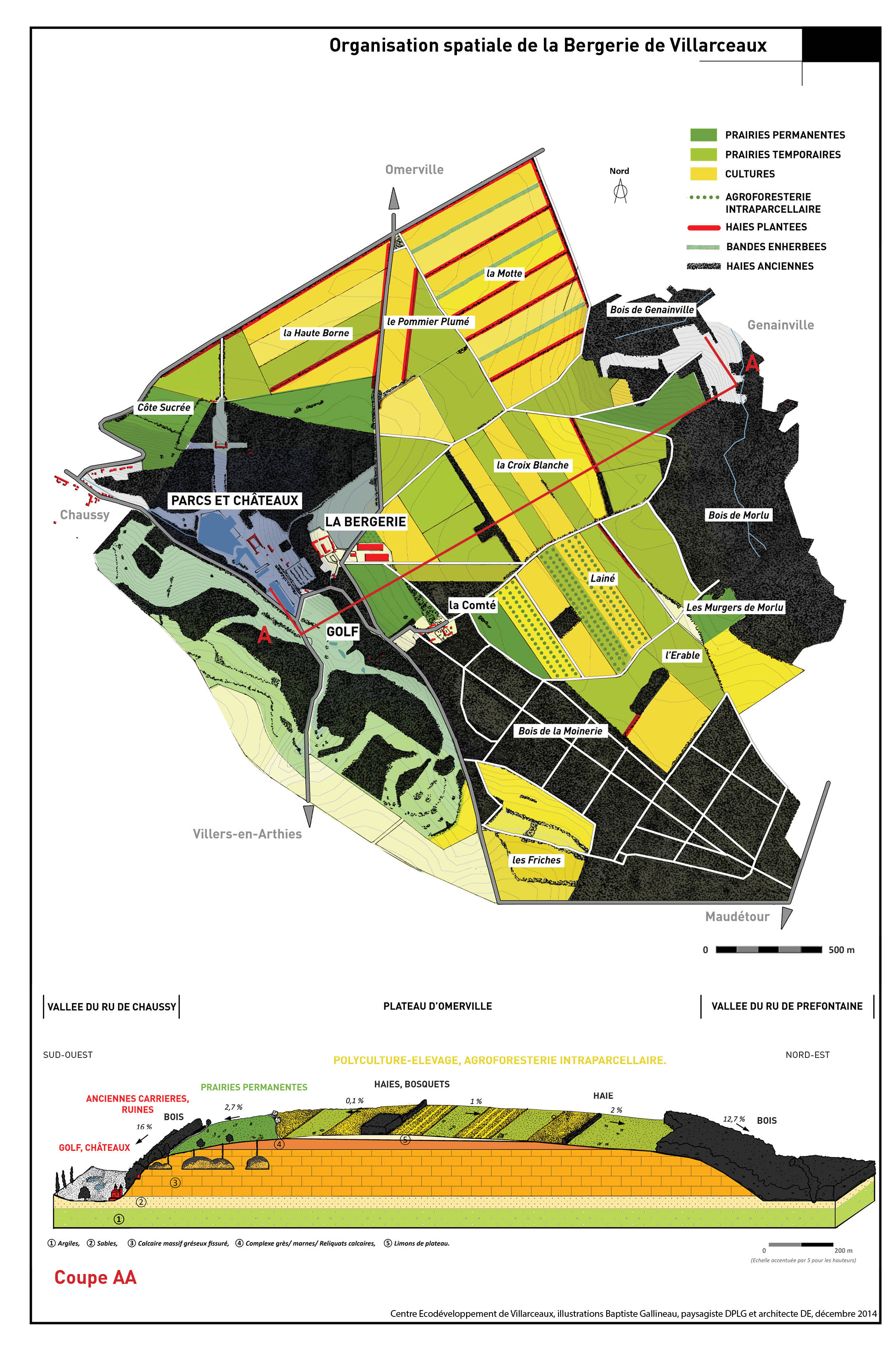 Les 8 posters ci-dessous vous présenteront en image l'organisation spatiale de la Bergerie de Villarceaux, sa géologie, la transition agricole et paysagère, l'agroforesterie à Villarceaux, etc